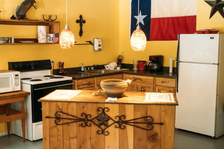 Two clubhouses are available for groups. The “Sho Me” Clubhouse accommodates up to 60 guests and overlooks the pond. The Texas Clubhouse has room for 45. Both include a kitchen, restroom (with shower), tables, and chairs.